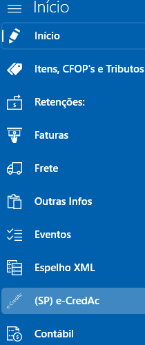 Com o documento em edição, navegue até a aba "(SP) e-CredAC" na barra lateral esquerda: